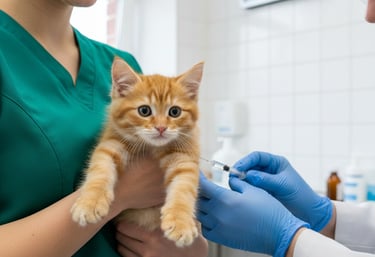 Aplicação de vacinas essenciais e reforços, seguindo o calendário vacinal adequado para cada espécie e idade.