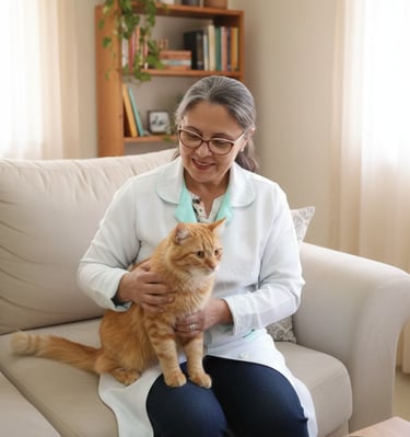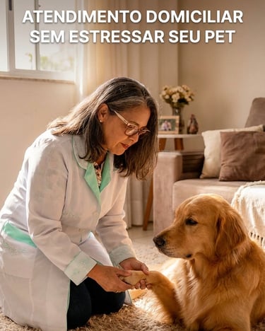 Cuidados veterinários em casa com carinho e atenção personalizada para seu pet.